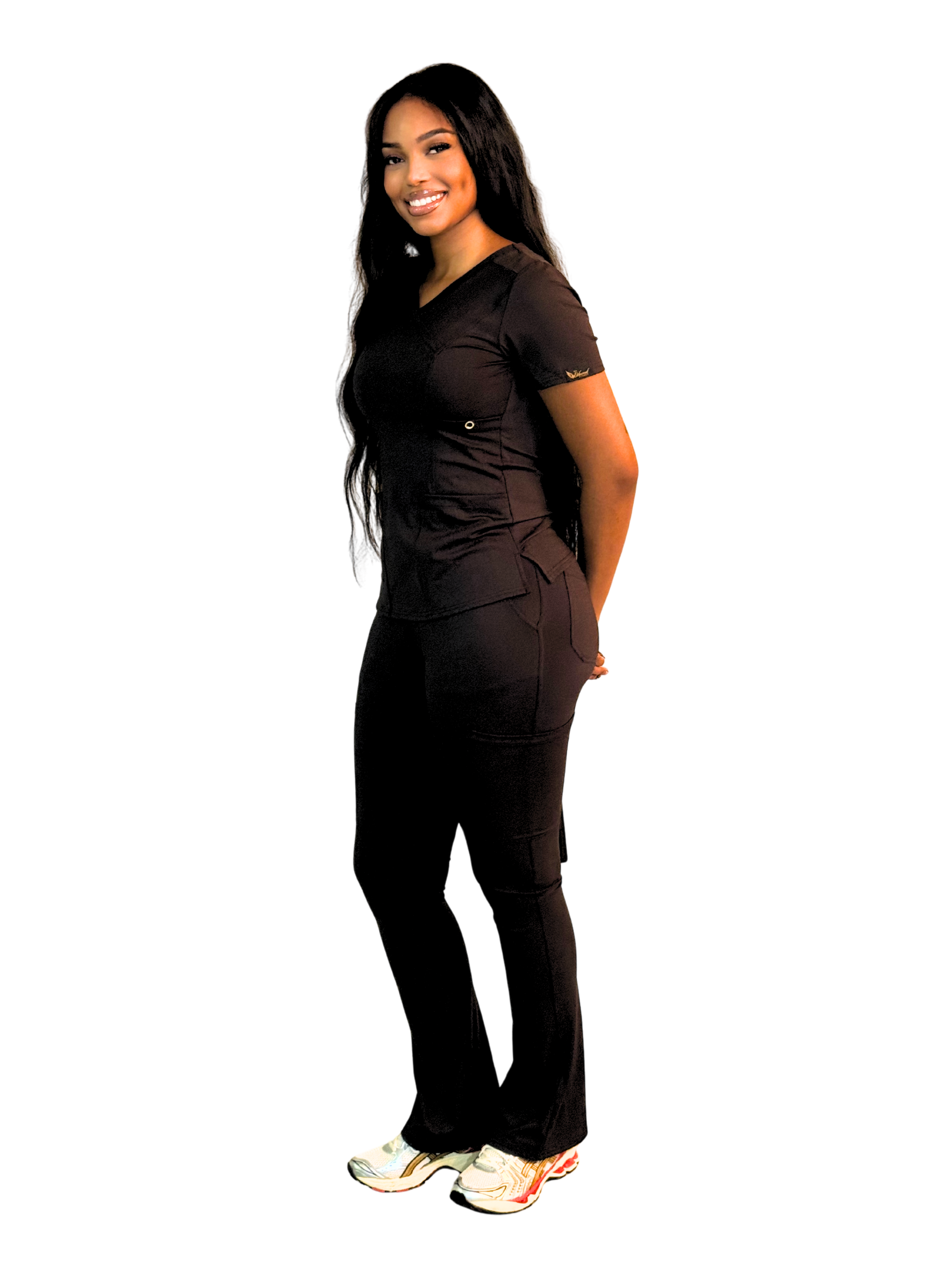 • Ultra‑stretch performance fabric—moves on shift, styles off duty