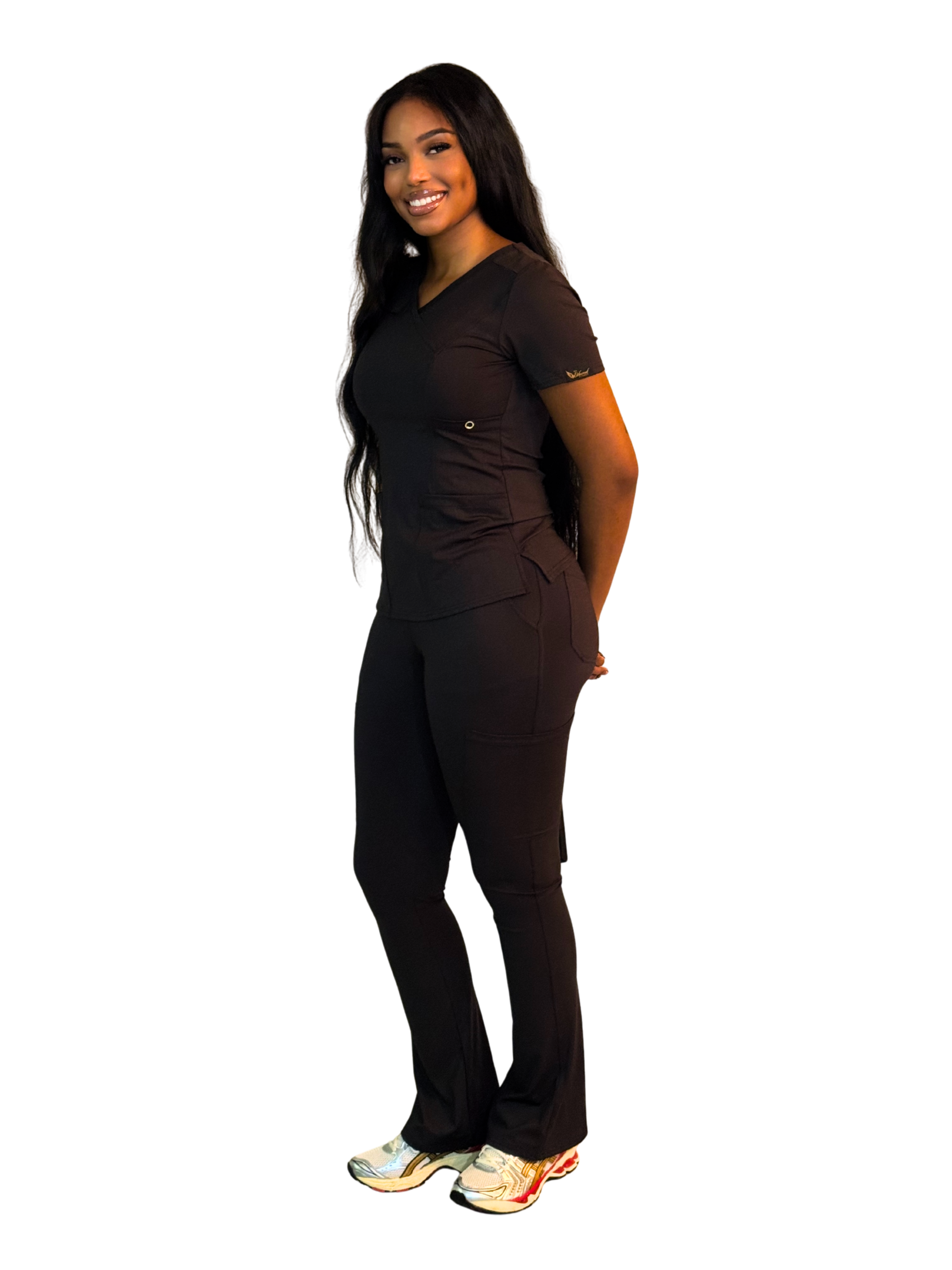 • Ultra‑stretch performance fabric—moves on shift, styles off duty